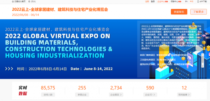 作為廣東省“粵貿全球”系列展會之一的2022云上·全球家居建材、建筑科技與住宅產業化博覽會,以打造“粵貿全球”品牌為己任,開展首日聚集255家家居建材、建筑科技與住宅企業,全球85517人次(數據統計截止至6.8下午17時)云上實時觀展,集中展示智能家居、家居門窗、陶瓷、衛浴廚電、建筑材料、定制家居、家居配套服務等領域企業的尖端技術、熱門產品、解決方案,全方位展示“粵企”實力,多角度體現“粵貨”魅力。