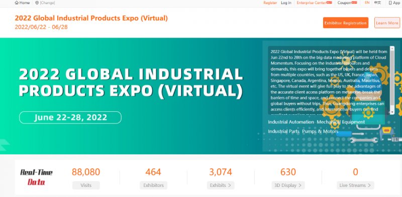 據平臺實時數據顯示,本次云上博覽會首日吸引了88080人次(數據統計截止至6.22下午18時)上線觀摩交流、洽談采購,464家企業寬領域、多方位、深層次地展示各品類工業新優產品3074個,3D新穎元素630個。各大品牌粵企在云上發力工業品國際貿易市場,展現了粵港澳大灣區工業制造創新力量和強大基因,齊心協力塑造全球化國產品牌IP,讓國產品牌在國際社會中走得更快、走得更穩、走得更遠,從而吸引國際貿易訂單源源不斷地涌進來!